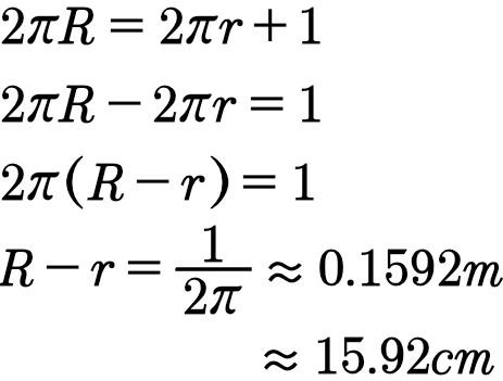 有一个酷好的问题:地球半径概况6371公里,地球赤说念的周长概况40000公里。假如在地球的赤说念牢牢捆住一根绳索,设半径为r,再把这根绳索加长1米,就得回一个赤说念的齐心圆,设半径为R。彰着,R-r便是齐心圆和赤说念之间的谬误,这个谬误确定大于零。当今问题来了,开云官方体育app这个谬误能否钻过一只老鼠?