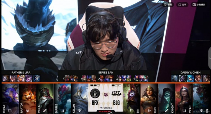 BLG:上单Bin、打野Xun、中单knight、下路Viper、赞助ON