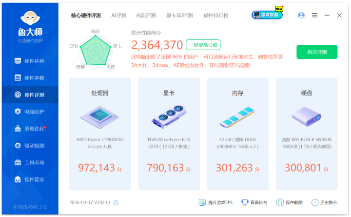 处分器:AMD 锐龙 7 9800X3D