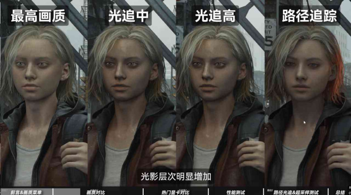 只不外,想要杀青卡普设想让你看到的最好游戏画面,必须有杀青光追全开的硬件。比如底下即是网友之间流传出最故意象的对比图:硬件弗成是没资历看到格蕾丝的好意思貌。