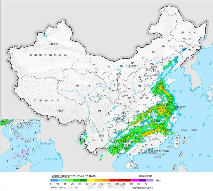 不外,广东的天气画风正在泛动中。今天(2月26日)朝晨,我国南边有大限制的降雨,雨带东移南压,稍后韶关、清远、肇庆一带降雨渐趋赫然。