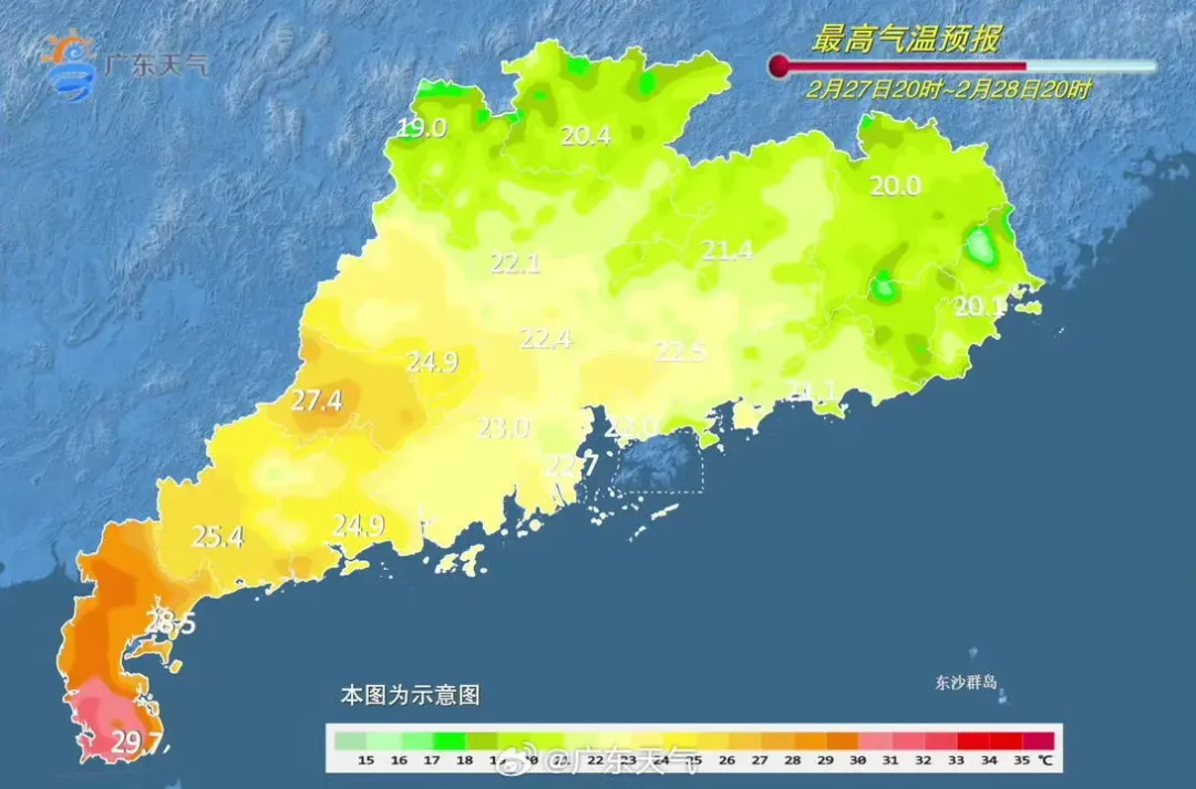 27-28日,雷州半岛多云间阴天,有雷阵雨局部大雨,其余大部市县有一次中到大雨局部暴雨的降水流程,并伴有雷电、6~8级的短时大风和短时强降水,最大时雨量20~40毫米。