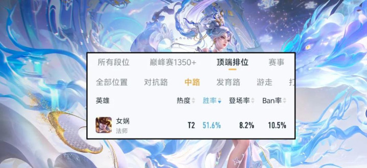 从数据上看,此次退换对女娲变成的影响不是很大,尖端排位中依旧有相比高的胜率和优先级。