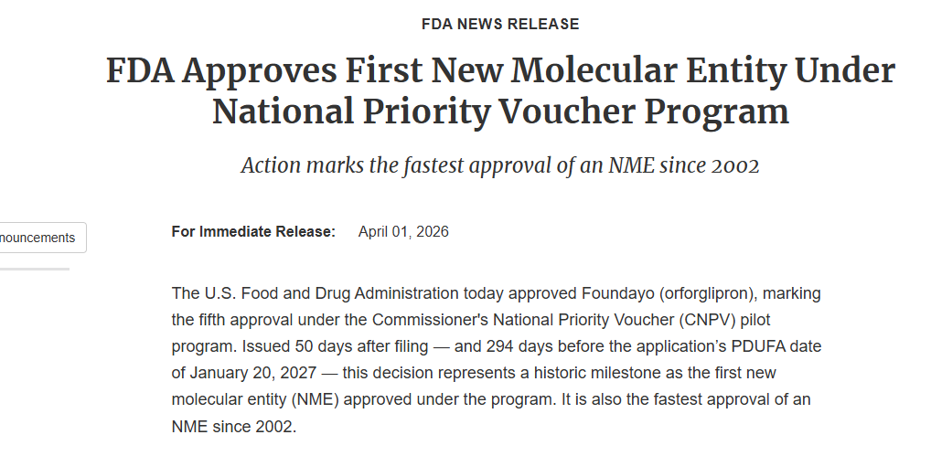 这次批准距离礼来向FDA提交该药肯求仅数月时辰,该肯求通过了一项针对“国度优先药物”的快速审评通谈。这意味着,礼来推出Foundayo的时辰仅比诺和诺德的Wegovy口服版晚约三个月,这两家制药商将围绕GLP-1新药张开下一轮对决。
