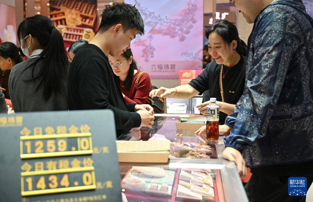 1月17日,顾主在海口日月广场免税店选购黄金饰品。