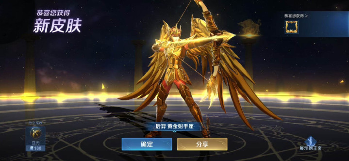 第三款要说的是后羿的黄金弓手座,这亦然一款上线好多年的皮肤了。念念当年官方也仅仅安排了三款圣斗士系列的皮肤,但每一款皮肤的评价皆相等高。
