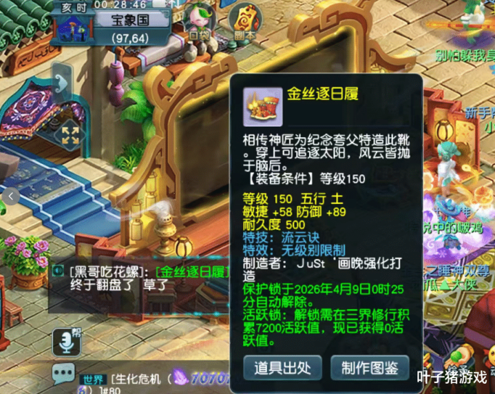 第二件让东说念主气象的作品是这双140级鞋子,天然属性为国标,但附带水清诀特技,蓦地化身成PK神装,终点顺应我方的盘丝洞使用。