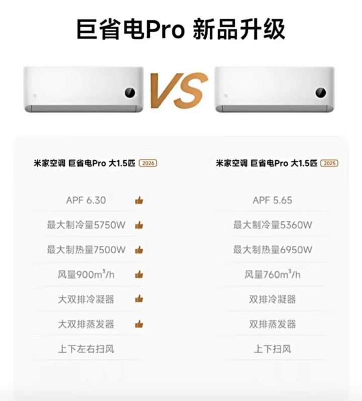 那朱磊说的6.3APF值到底是哪家产物?家电东谈主查询后发现商场上APF值达到6.3的可谓凤毛麟角,只发现一款产物为大1.5匹2026款巨省电Pro米家空调。米家空调为何能如斯“出众”?