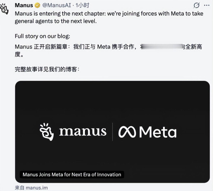 2025年底,好意思国酬酢巨头Meta高调文书,斥巨资全资收购东谈主工智能初创公司Manus。按照原宗旨,Manus独创东谈主肖弘行将飞赴加州,新官上任Meta副总裁。这笔来往一朝告成交割,将成为Meta史上第三大并购案。