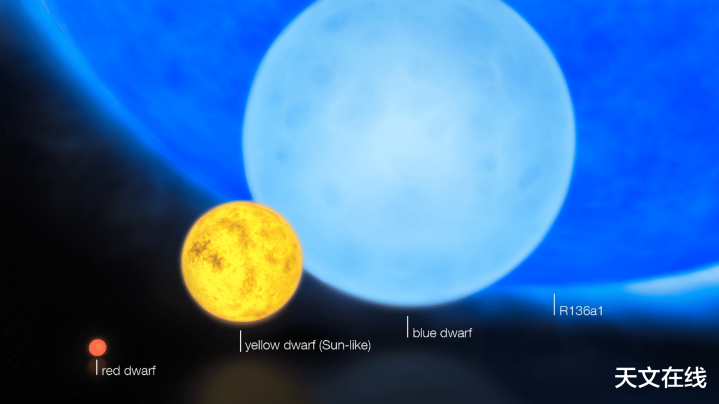 这幅构念念图展示了年青恒星的相对大小,规模从质料约为0.1个太阳质料的最小红矮星,到低质料黄矮星(如太阳),MILAN SPORTS再到质料是太阳八倍的大质料蓝矮星,以及名为R136a1、质料达300个太阳质料的恒星。(图源:欧洲南边天文台)