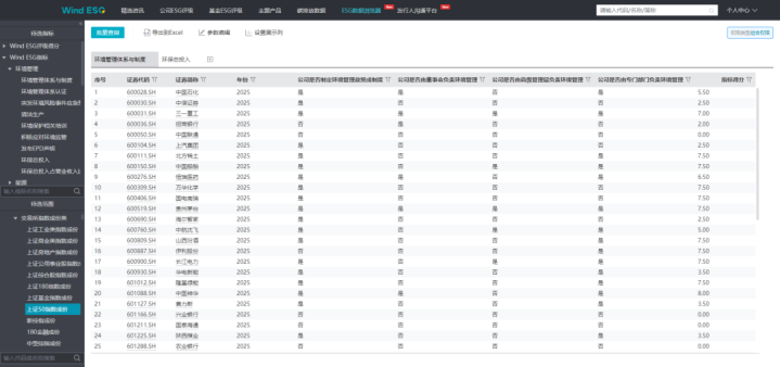 从评级为止漫衍到环境、社会、治理维度平分,从征象变化料理轨制到温室气体排放表露,再到研发参预与审计任期等专题宗旨,WindESG宗旨数据浏览器可匡助用户将别离的底层数据回荡为可比拟、可追踪、可导出的筹画样本,为专题分析、同行比拟和趋势不雅察提供更高效的数据撑合手。