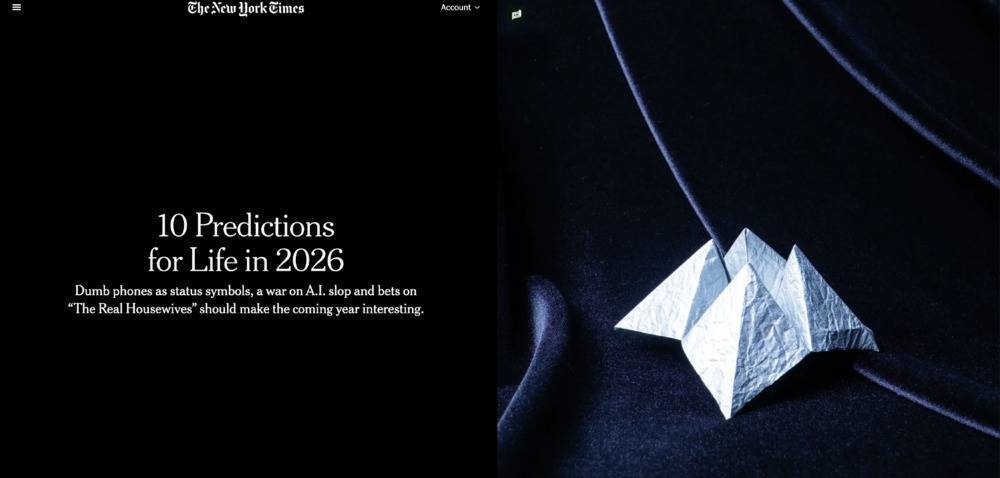 2026年,当东说念主们对泛滥的垃圾内容(slop)感到厌倦时,我们将见证一场转向——东说念主们将再行拥抱艺术、笔墨偏激他体现侘寂精神的创作。这种好意思学理念在不好意思满中发现好意思,在未经雕琢的事物中寻得欢愉。