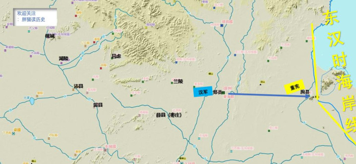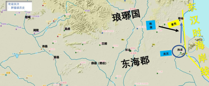 董宪、庞萌两个能逃的小强链接向东流窜,谢却朐县。彼时海岸线较本日更偏西,朐县已面临海边,几无退路。